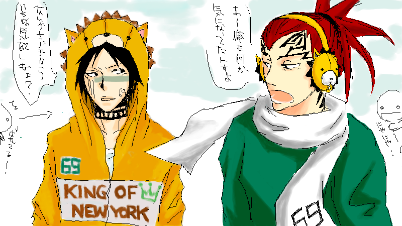 途中から棗さんとふたりになったのでまったりと先輩話とか死神がmixiやってたらとか、そんな話をさせていただいてたのですが、なんでだろう「コン」熱が上がってきましてですね、こんな絵描いてました↓↓
